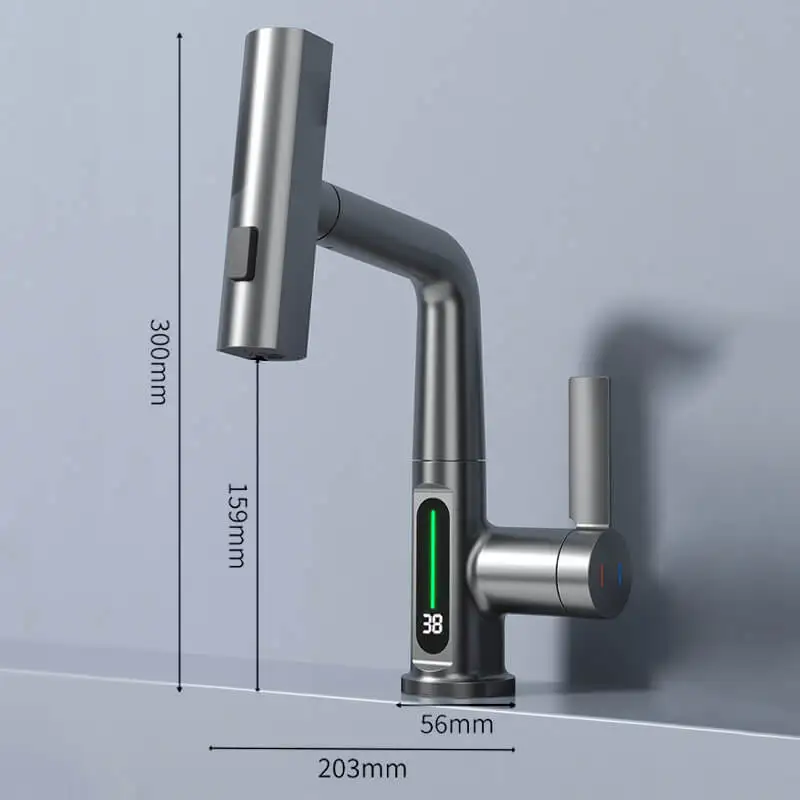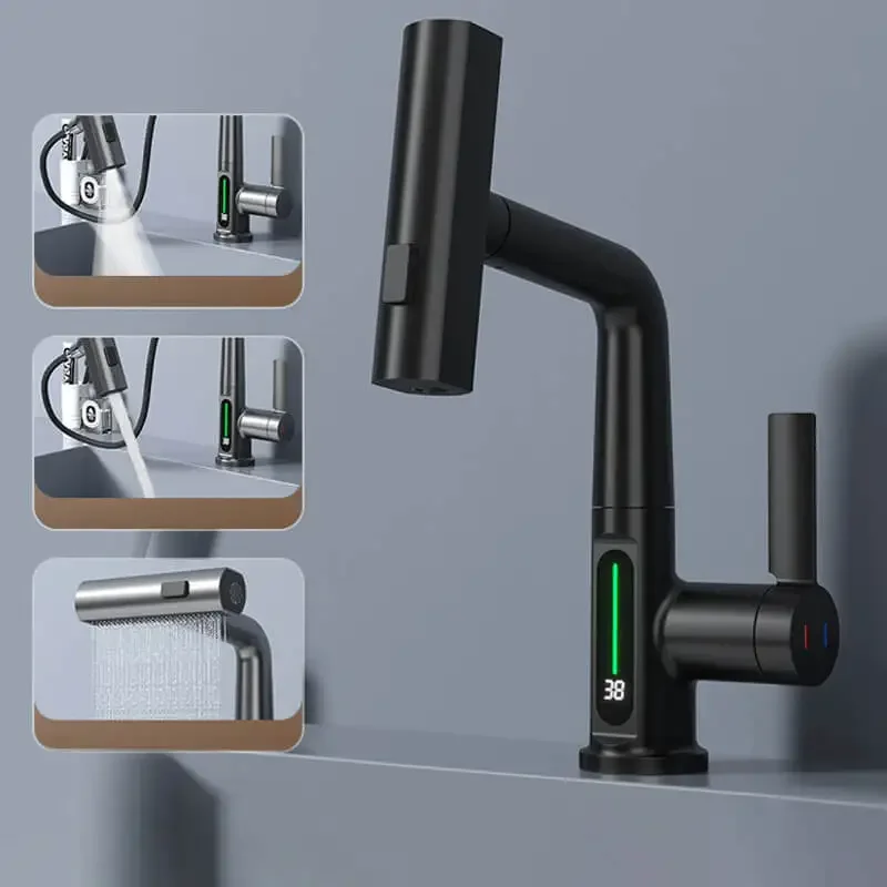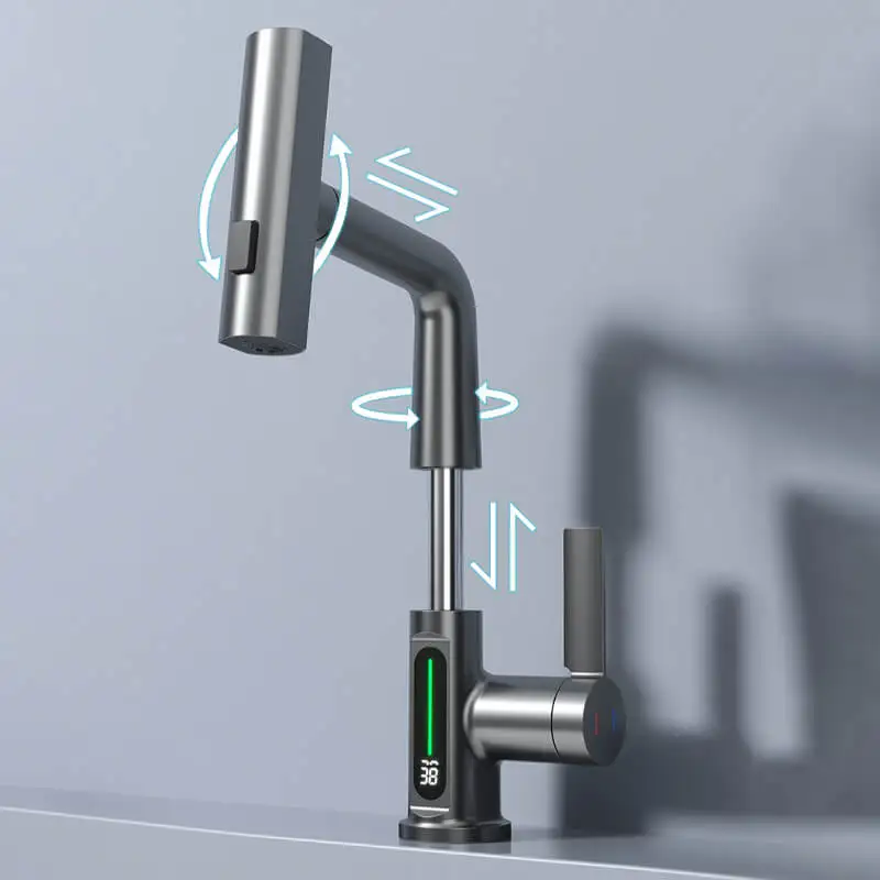 Waterfall Temperature Digital Display Basin Faucet Lift Up Down Stream Sprayer Hot Cold Water Sink Mixer Wash Tap For Bathroom